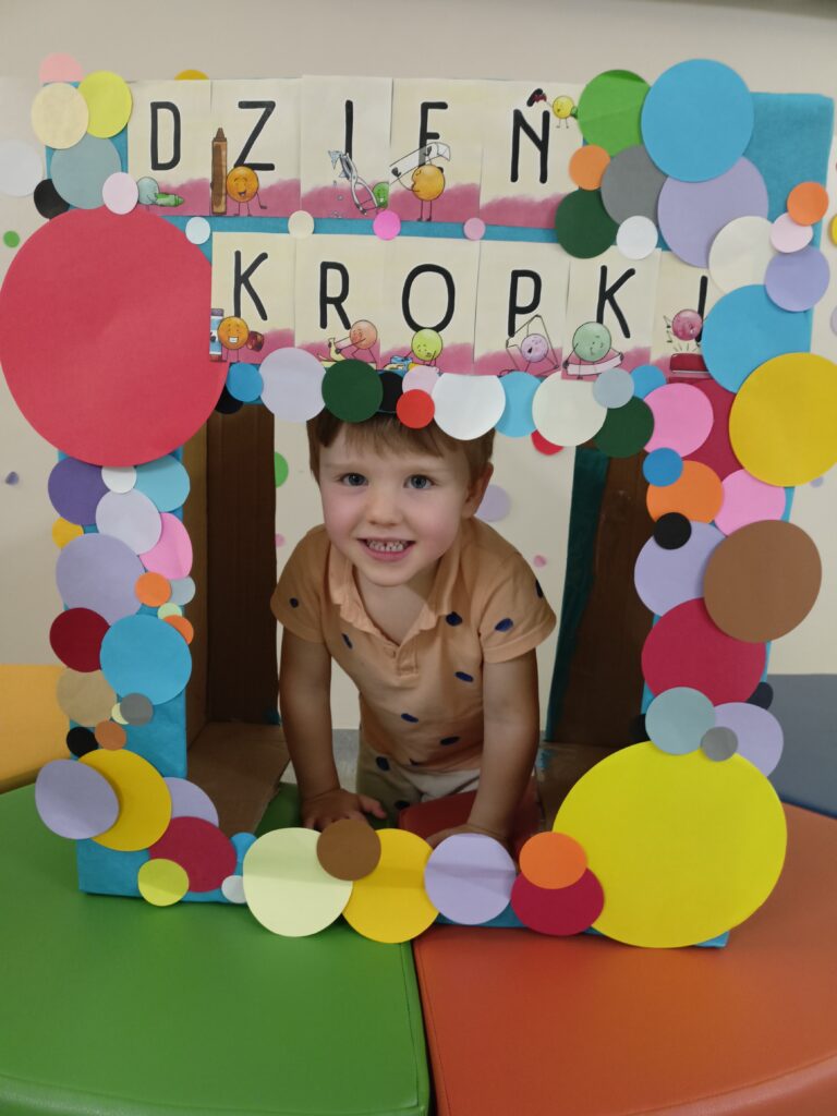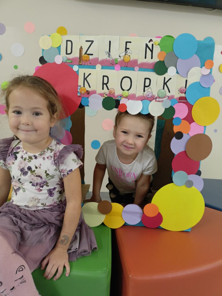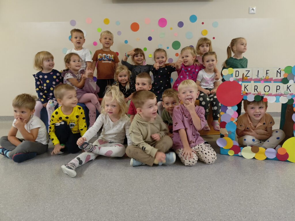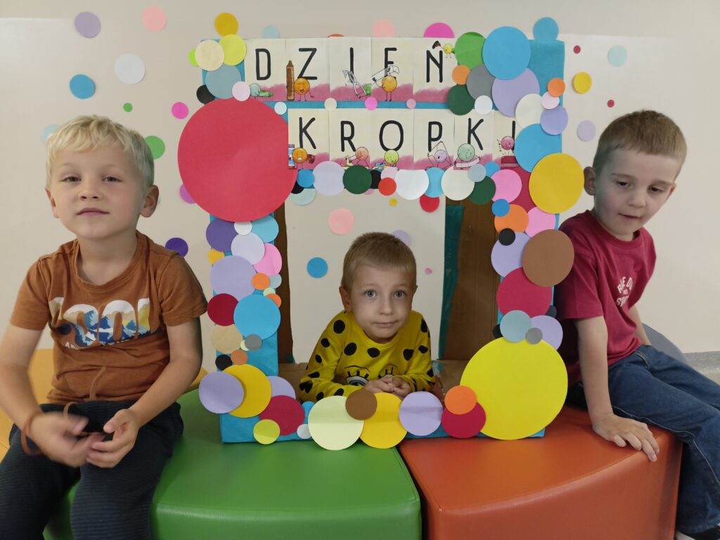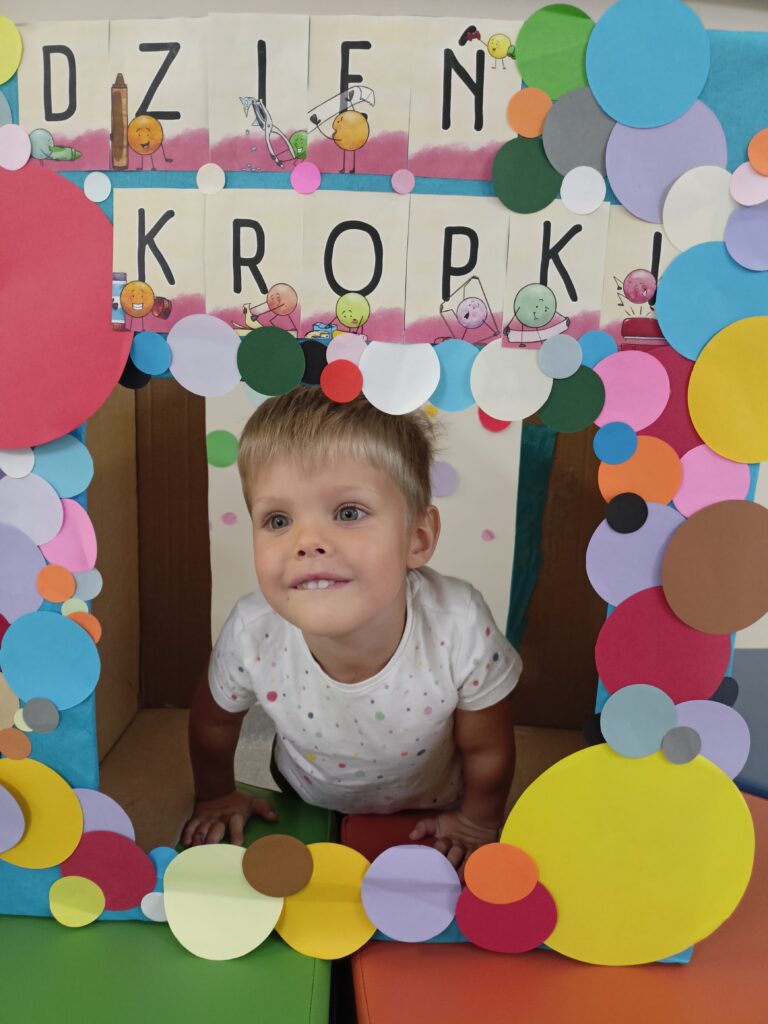 „Dzień Kropki” przedszkolaki z grupy „Liski” świętowały 16 września. Najpierw poznały historią małej Vashti, dziewczynki, która myślała, że nie umie rysować. Później dzieci tworzyły własne obrazki z wykorzystaniem kropki, od której swoją przygodę z rysowaniem zaczynała Vashti. Była też gimnastyka z kropką oraz pamiątkowa sesja zdjęciowa. „Dzień Kropki” jest okazją, aby zachęcać dzieci do wyrażania siebie poprzez sztukę. Ale przede wszystkim ma uświadamiać dzieciom ich potencjał oraz wartości ich własnych działań i pomysłów.