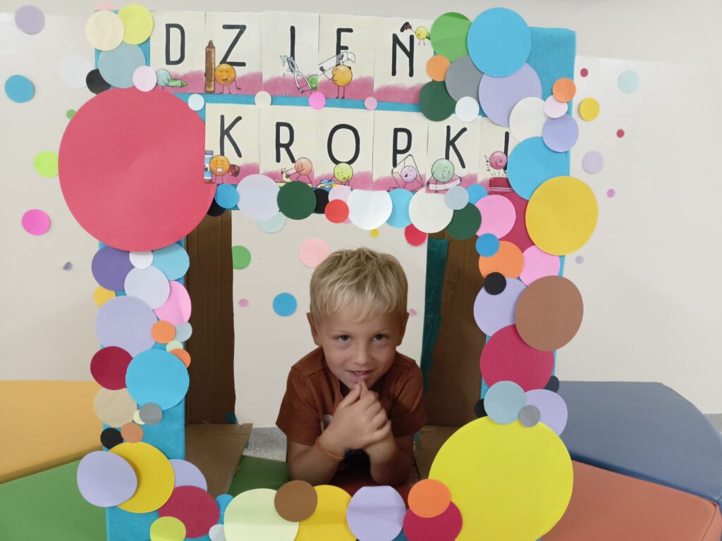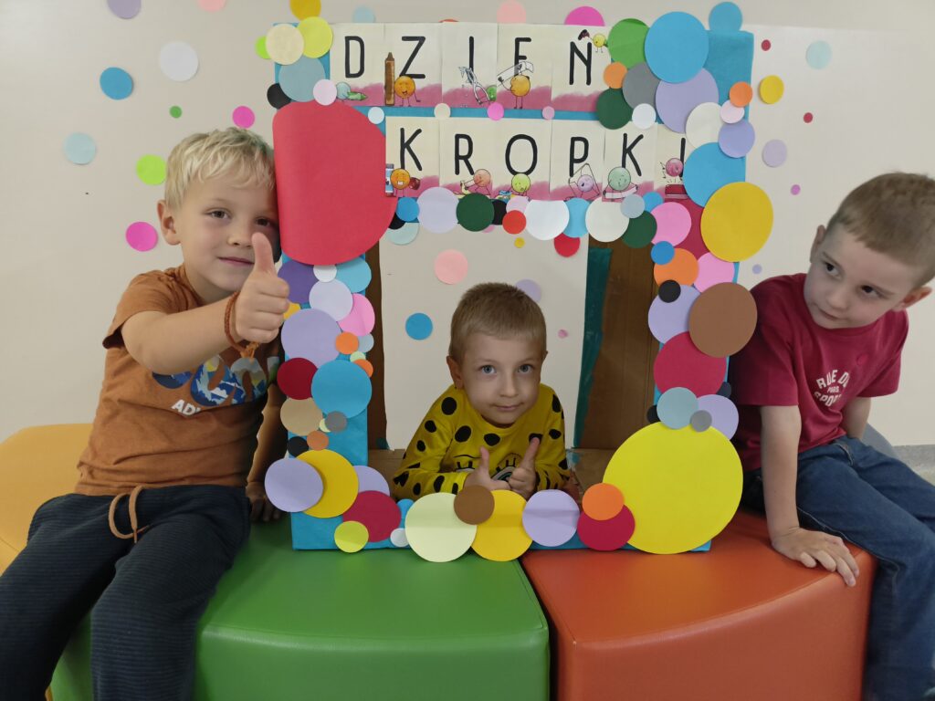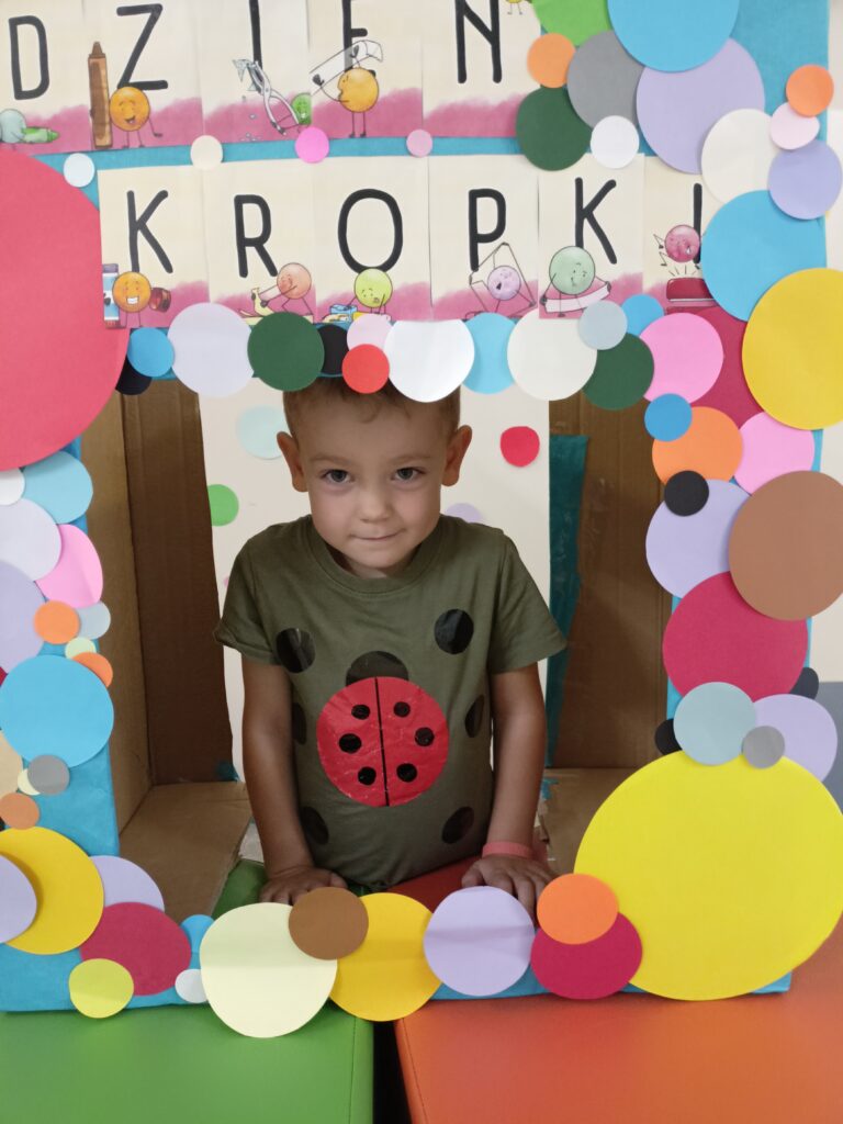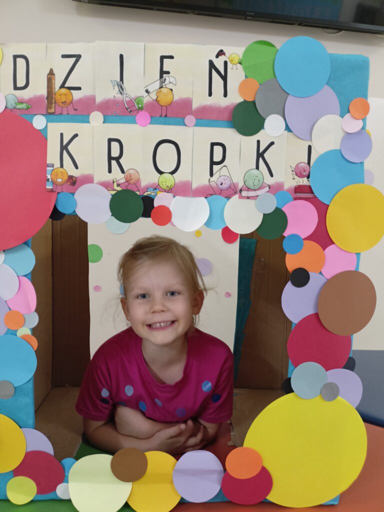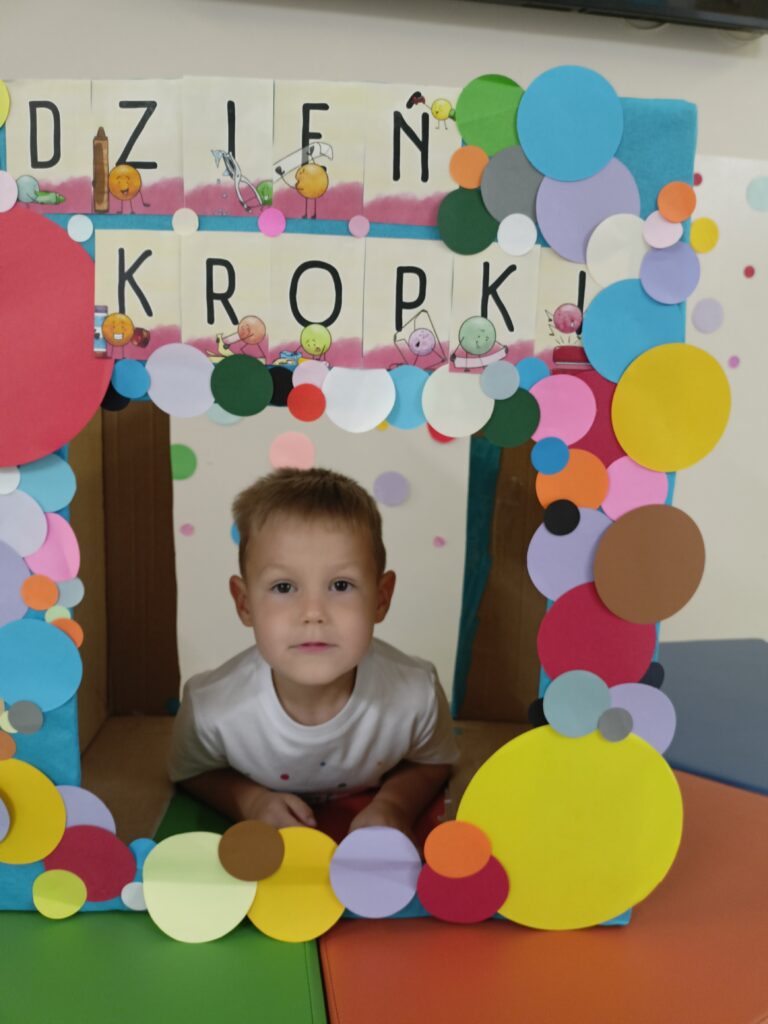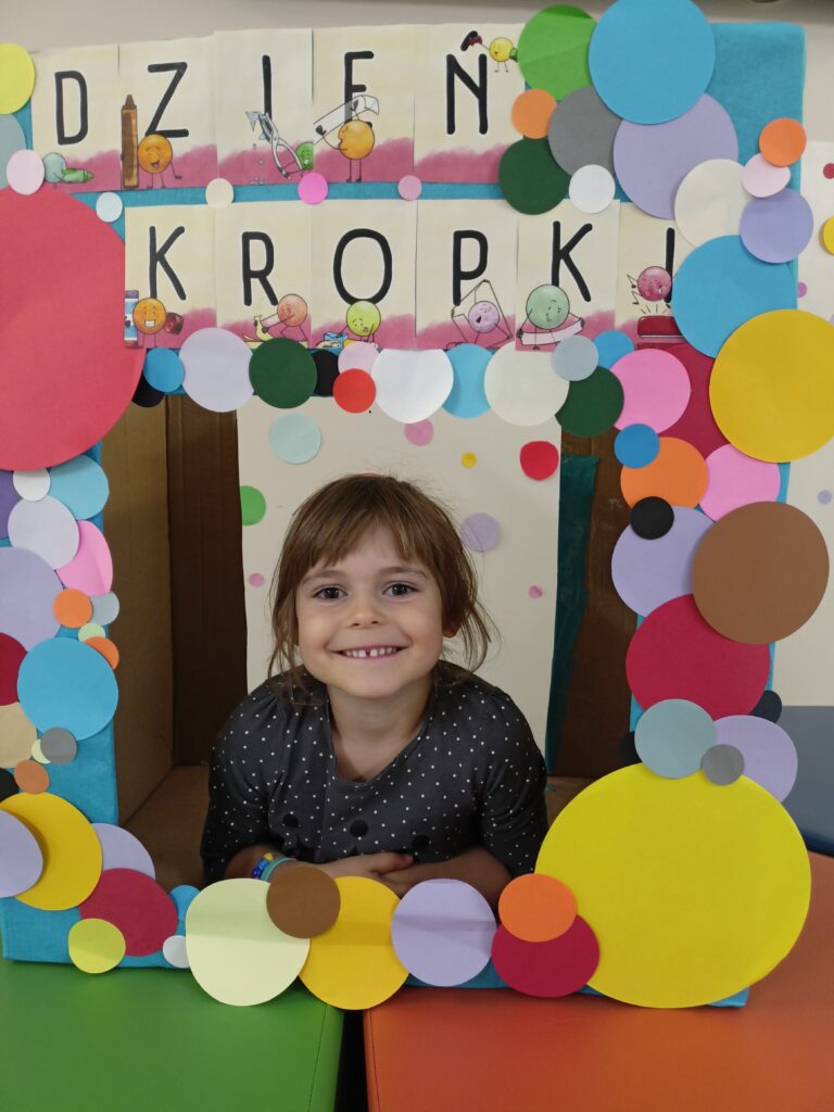 „Dzień Kropki” przedszkolaki z grupy „Liski” świętowały 16 września. Najpierw poznały historią małej Vashti, dziewczynki, która myślała, że nie umie rysować. Później dzieci tworzyły własne obrazki z wykorzystaniem kropki, od której swoją przygodę z rysowaniem zaczynała Vashti. Była też gimnastyka z kropką oraz pamiątkowa sesja zdjęciowa. „Dzień Kropki” jest okazją, aby zachęcać dzieci do wyrażania siebie poprzez sztukę. Ale przede wszystkim ma uświadamiać dzieciom ich potencjał oraz wartości ich własnych działań i pomysłów.