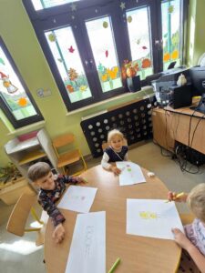 Słoneczka z gr. 1 ozdabiają świąteczne pierniki