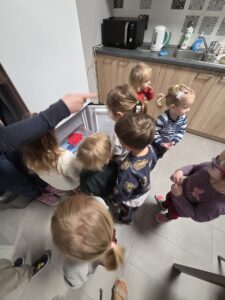 Bardzo lubimy poznawać świat i eksperymentować. Tym razem wykonaliśmy eksperyment z wodą- nalaliśmy wodę do foremek na lód, które następnie włożyliśmy do zamrażalki. Następnego dnia obserwowaliśmy, jak woda zamarzła.