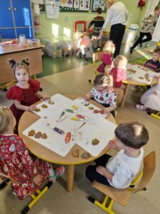 W piątek zorganizowaliśmy w grupie ozdabianie pierników. Przynieśliśmy z domu wcześniej upieczone pierniki, aby móc je ozdabiać kolorowymi spożywczymi pisakami. Po wykonanej pracy zjedliśmy je ze smakiem.