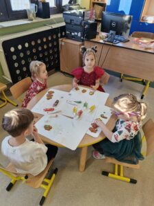 Słoneczka z gr. 1 ozdabiają świąteczne pierniki